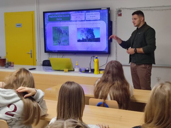 – Upravo zbog širenja gljive halare (Chalara fraxinea), patogene gljive koja uzrokuje odumiranje i propadanje stabala, Europa je gotovo ostala bez jasenovih šuma. U našim šumama sve se rjeđe susreće jasen, a drvo brijesta već dugo nisam vidjela. U takvim situacijama teško je očekivati da će se šuma obnoviti prirodnim putem. Tada je nužna konverzija, odnosno promjena vrste sastojine unošenjem sadnica uzgojenih u rasadnicima – pojasnila je Tihana Pavelić iz Hrvatskih šuma na edukaciji za učenike u Osnovnoj školi Velika Mlaka. Sa zanimanjem su stručna izlaganja prilagođena dječjem rječniku slušali učenici Osnove škole Eugena Kumičića.